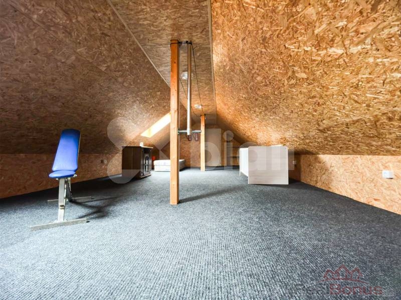 Dispozičně dům nabízí čtyři samostatné pokoje, prostornou kuchyň a dvě koupelny, z nichž jedna je vybavena vanou a toaletou a druhá sprchovým koutem a toaletou. Vytápění domu je řešeno elektrokotlem v kombinaci s podlahovým topením. Nemovitost je napojena na veřejný vodovod, k dispozici je také vlastní studna a odpad je sveden do obecní kanalizace. Velkou výhodou je podkroví, které nabízí možnost další úpravy a rozšíření obytného prostoru dle vlastních představ.
