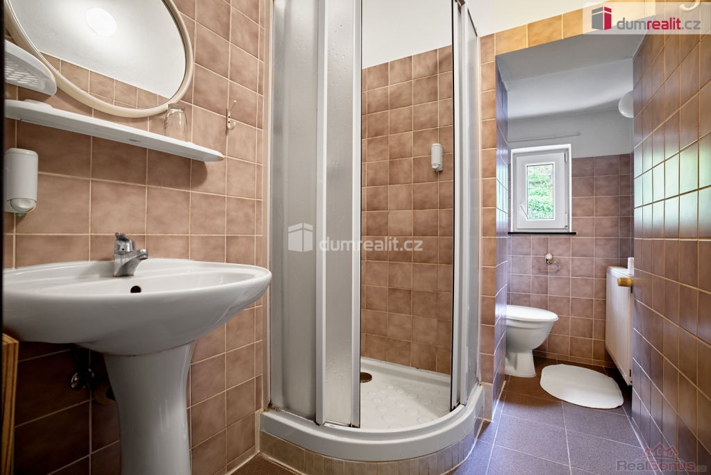 cena je vč. právního servisu a provize RK, Dumrealit.cz Vám zprostředkuje prodej zavedeného penzionu v krušnohorské obci Nejdek. Dům byl v roce 1997 kompletně zrekonstruován, je napojen na všechny inženýrské sítě a vytápěn je plynovým kotlem. V přízemí jsou dva samostatné pokoje se sociálním zařízením a jeden s kuchyňkou, dále garáž, prádelna a vstup do sklepa, kde je umístěn plynový kotel se zásobníkem. V 1. patře domu jsou 3 samostatné dvoulůžkové pokoje s příslušenstvím. Ve 2. patře je byt 2+1 (4 lůžka), který byl vybudován před 5 lety. V tomto patře je i vstup na půdu, která je využívána jako odkládací prostor. Za domem je terasovitá zahrada s možností vstupu do lesa na Křížovou cestu. Veškerá potřebná občanská vybavenost je v obci snadno dostupná. V blízkém okolí je řada lyžařských a sportovních středisek, turistické, běžecké a cyklistické trasy. Tuto nemovitost lze hradit úvěrem, který Vám rádi pomůžeme vyřídit v našem finančním centru. Vzhledem k tomu, že před zadáním do inzerce nebyl vyhotoven PENB, je tento byt v souladu s platným zákonem zařazen do energetické třídy G. Ev. číslo: 648655. Energetický štítek: G