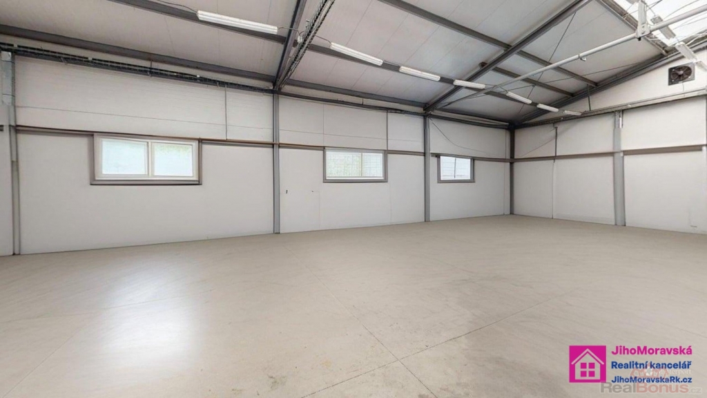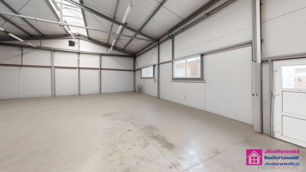 Objekt je napojen na el. proud, vytápění je infrazářiči. Podlaha je broušený beton. Světlá výška je 4 metry. Jsou zde sekční vrata, vhodná pro průjezd většího automobilu.