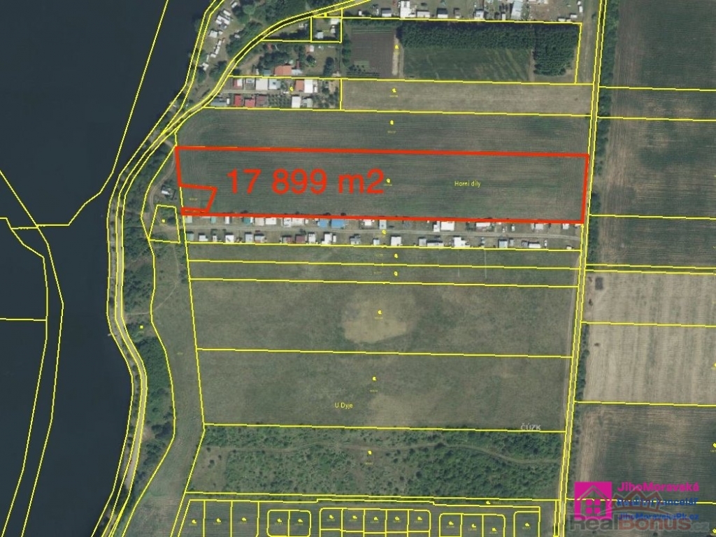 Dále je možnost koupě dalšího stavebního pozemku (č. 183/138) o ploše 17 899 m2 s rozměry cca 55 x 335 m, který má stejné územně plánovací parametry.