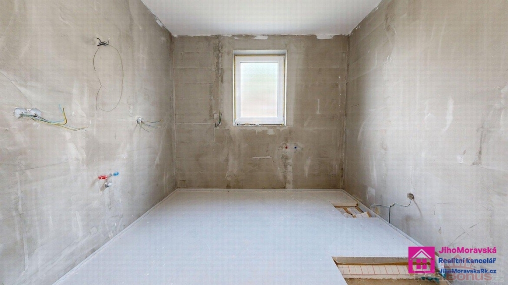 Před nastěhováním je třeba dokončit koupelnu, kuchyň, zárubně, interiérové dveře apodlahy v pokojích.Podepsána smlouva na připojení na kanalizaci.