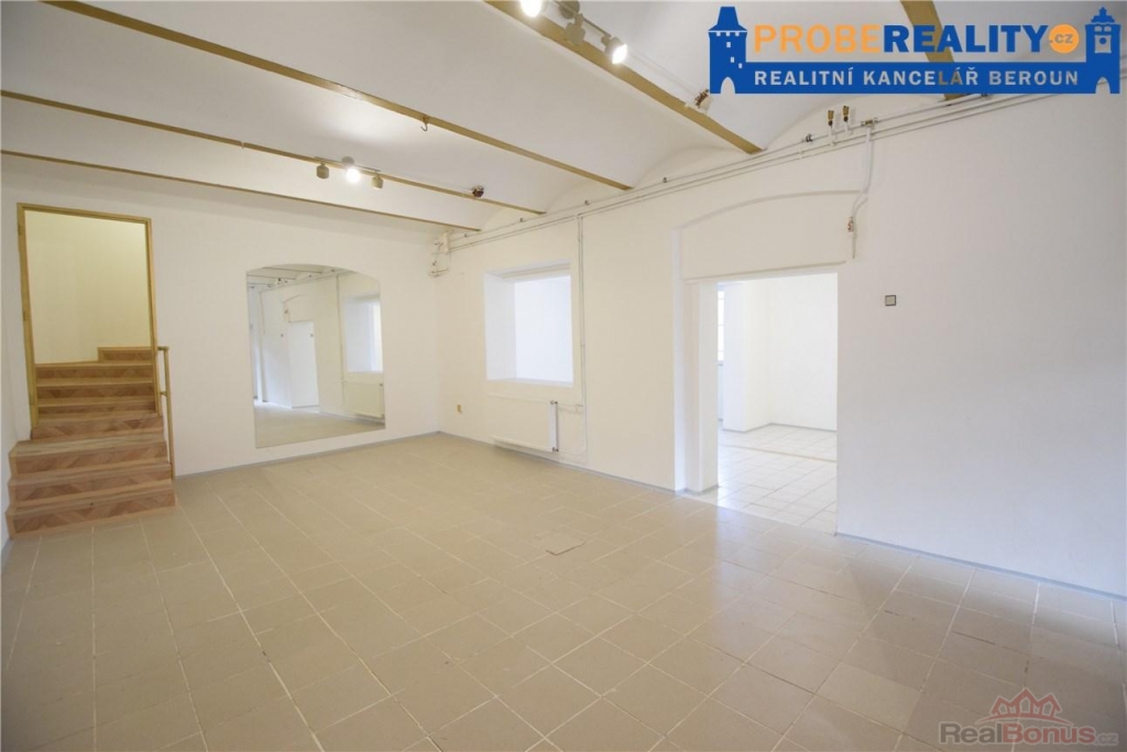 Nabízíme k pronájmu nebytové prostory o celkové výměře 93 m2, nacházející se ve zvýšeném přízemí měšťanského domu and #34;U Tří Korun and #34; - Beroun, se vstupem z Ulice Havlíčkova. Jedná se o prostory rozčleněné do tři místností a vlastním WC. Vhodné jako kanceláře, výrobní prostor, sklad nebo studio . Velice žádaná lokalita v centru města. Více info v RK.