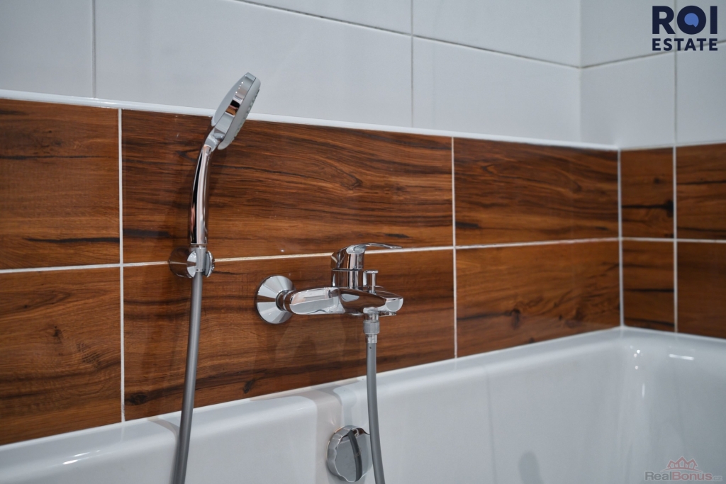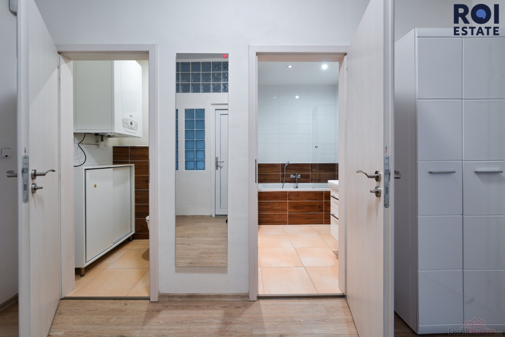 Koupelna je vybavená vanou, toaleta je oddělená, což je praktické a komfortní řešení. Rekonstrukce je na bytě znát. Působí čistě, klidně a je připravený k okamžitému nastěhování.