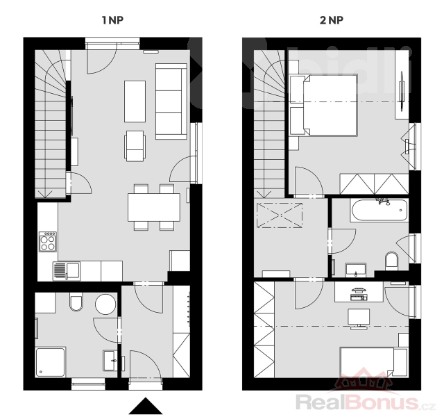 Novostavba nízkoenergetického mezonetového bytu o dispozici 3+KK a podlahové ploše 85,5 m2, v provedení montované dřevostavby (v rámci projektu je možné zvolit i byt ve zděné variantě). Byt je součástí trojdomu - tedy domu se třemi samostatnými jednotkami. Svým uspořádáním připomíná spíše řadový rodinný dům, ideální pro moderní a úsporné bydlení. V přízemí se nachází prostorný obývací pokoj s kuchyňským koutem, koupelna a zádveří. V patře pak najdete ložnici, další pokoj, druhou koupelnu a chodbu. K bytu náleží také snadno udržovatelná zahrada o rozloze 112 m2, která nabízí prostor pro relaxaci i volnočasové aktivity. Ke každé bytové jednotce náleží 1 parkovací stání.