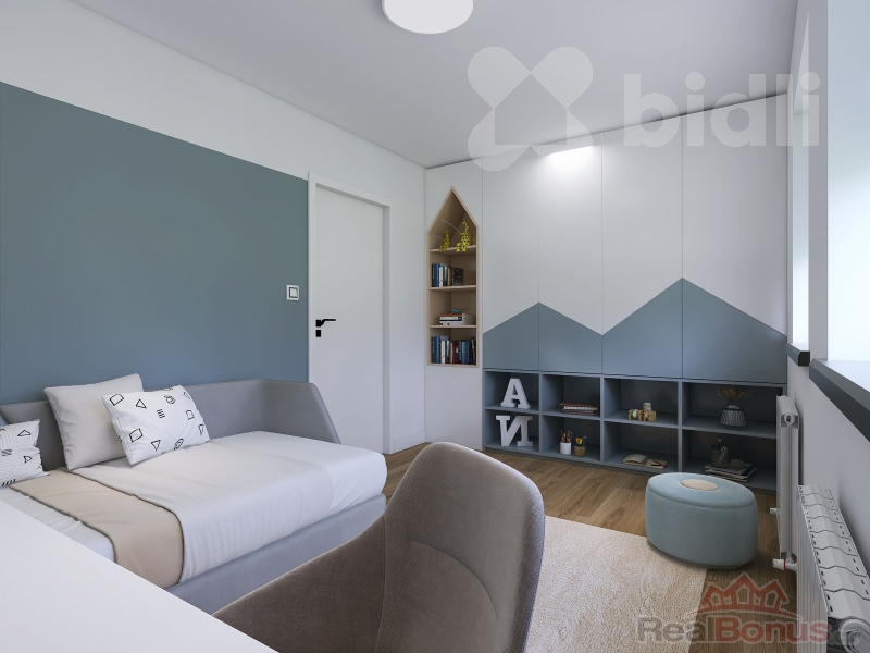 Novostavba nízkoenergetického zděného mezonetového bytu o dispozici 3+kk a podlahové ploše 85,5 m2, který je součástí trojdomu - tedy domu se třemi samostatnými jednotkami. Svým uspořádáním připomíná spíše řadový rodinný dům, ideální pro moderní a úsporné bydlení. V přízemí se nachází prostorný obývací pokoj s kuchyňským koutem, koupelna a zádveří. V patře pak najdete ložnici, další pokoj, druhou koupelnu a chodbu. K bytu náleží také snadno udržovatelná zahrada o rozloze 48 m2, která nabízí prostor pro relaxaci i volnočasové aktivity. Ke každé bytové jednotce náleží 1 parkovací stání.