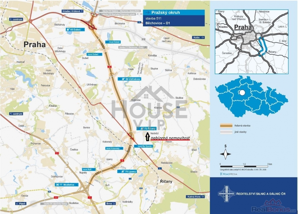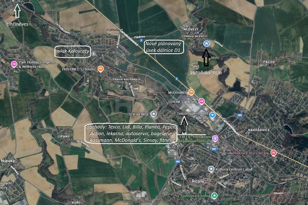 - 3 min. nájezd na dálnici D1 (plánované dokončení úseku 511 Běchovice ? D1 v roce 2027, který výrazně zlepší dostupnost do centra Prahy).