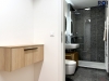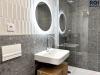 Koupelna jako malé spa - Koupelna překvapí svou velikostí i zpracováním ? velkoformátové šedé obklady v kombinaci s krémovou barvou, zabudované LED zrcadlo, sprchový kout.