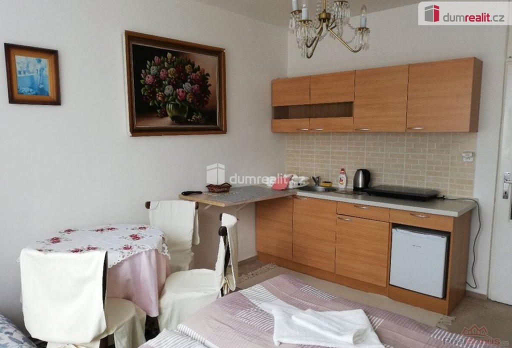 , Dumrealit.cz Vám zprostředkuje pronájem krásného slunného bytu 1+kk/S v prvním patře panelového domu s výtahem v Mariánských Lázních. Bytová jednotka o celkové rozloze 24 m nabízí předsíň, obývací prostor s kuchyňskou linkou a koupelnu se sprchou a toaletou. Krásná bytová jednotka je po rekonstrukci a je novému nájemníkovi ihned k dispozici. Nájemník může užívat lodžii v mezipatře, která náleží výlučně k bytu. V bytě zůstane veškeré vybavení patrné z fotografií: kuchyňská linka včetně varné desky, lednice, stůl se židlemi, postel s matracemi, 2 skříně, noční stolek, botník, TV, zrcadlo, v koupelně pračka. Budova je také po revitalizaci: zateplená nová fasáda, zateplená nová střecha, interiéry budovy, stoupačky, vstupní dveře, schránky. Vytápění je zajištěno centrálně dálkově z teplárny, v domě je rozvod anténové přípojky na televizi (STA). V okolí domu je dostatek parkování, nedaleko je poliklinika, zastávka MHD. V Mariánských Lázních je veškerá občanská vybavenost včetně úřadů, bank, restaurací, obchodů, jsou zde supermarkety LIDL, PENNY, TESCO, Kaufland, BILLA, DM, Planeo elektro, JYSK, super ZOO, TAKKO, KIK, Deichmann. Mariánské Lázně jsou úžasné místo pro život i odpočinek, jsou prošpikované sítí turistických, cyklistických a běžkařských tras. Sportovcům je k dispozici plavecký bazén, sportovní areál Viktorka, plochá dráha, zimní stadion pro bruslaře, lyžařská sjezdovka s lanovkou, jezdecká škola, tenisové kurty, v létě je v provozu koupaliště Lido s písečnou pláží. Mariánské Lázně se roku 2021 dostaly na seznam světového kulturního dědictví UNESCO, skýtají klid lázeňského města se zdravou vodou a čistým ovzduším. Mariánské Lázně se nacházejí v blízkosti německých hranic, tedy je vhodné pro ty, kteří tam hledají pracovní uplatnění. Nájemné činí 11.625,-Kč měsíčně, měsíční poplatky činí 1.375,-Kč pro 1 osobu, vratná kauce je 26.000,-Kč. Elektřina se přepisuje na nájemníka. Provize RK činí 9.000,-Kč + DPH (celkem 10.800,-Kč). Ev. číslo: 653420. Energetický štítek: D (15 kWh/m2/rok).