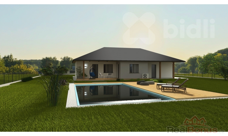 Nabízíme k prodeji stavební pozemek s vypracovaným projektem a platným stavebním povolením. Pozemek parc. č. 987 se nachází v malebné obci Lanžov v Královéhradeckém kraji a jeho výměra činí 1 842m2. Díky již vypracovanému projektu a platnému stavebním povolení je možné okamžitě zahájit výstavbu bez zbytečných průtahů. Součástí projektu je moderní bungalov o dispozici 4+kk s garáží a užitnou plochou 113 m2.