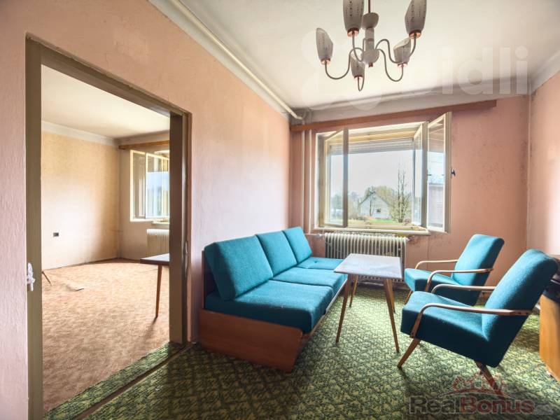 Samotný dům se nachází mimo hlavní silnici, je na příjezdové obecní cestě. Celý dům má pět pokojů, v patře lze ještě vybudovat krásný mezonetový pokoj. WC samostatné, v koupelně sprchový kout.