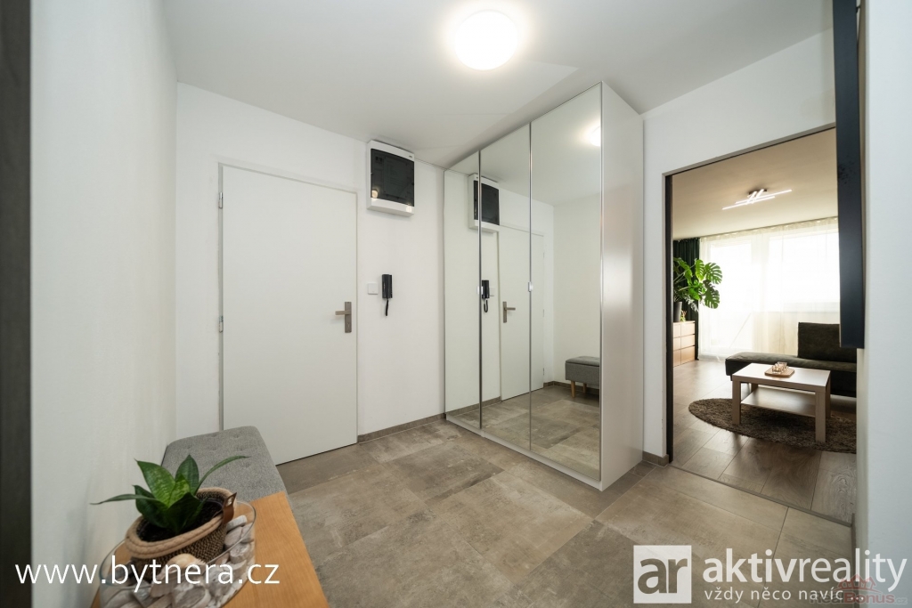 Byt prošel kompletní rekonstrukcí ? elektřina je v mědi, byt má zděné jádro, snížené sádrokartonové stropní podhledy a akustické panely, které zvyšují komfort bydlení a útulnost interiéru. Osvětlení je moderně řešeno s možností ovládání přes mobilní aplikaci. V bytě také byly použity akustické panely, které celému prostoru dodávají útulnost.