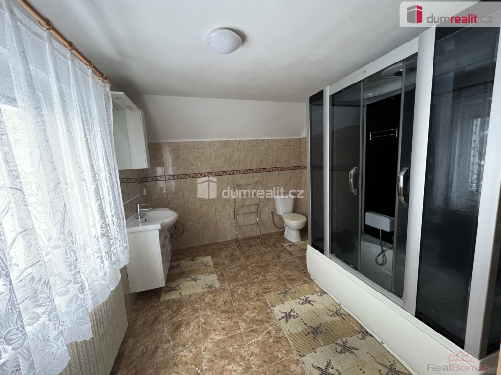 Cena včetně provize a právního servisu, Dumrealit.cz Vám zprostředkuje prodej samostatně stojícího zděného domu 5+1 Karlovice okres Bruntál. V I.PP se nachází kotelna, garáž a skladovací prostory, V I.NP kuchyně, obývací pokoj, ložnice, pokoj, koupelna s vanou, umyvadlem a WC. Schody do podkroví, kde jsou dvě obytné místnosti, šatna a koupelna s HM sprchovým koutem, umývadlo a splachovací WC. Ze dvora venkovní dřevěná terasa přiléhající k I.NP. Betonové schodiště do podkroví obložené dřevem, Vnitřní štukové omítky a keramické obklady koupelen, WC. Plastová okna, plastové vstupní dveře, sekční plastová garážová vrata a vnitřní dveře do obložkových a ocelových zárubní. Vytápění kotlem na pelety, rozvody v ocel. trubkách a otopné panely. Příprava TUV kombinovaný. boilerem napojeným na solární ohřev. K dispozici ihned, dohoda. V případě zájmu neváhejte a kontaktujte mě pro více informací či prohlídku. Ev. číslo: 653446. Energetický štítek: G