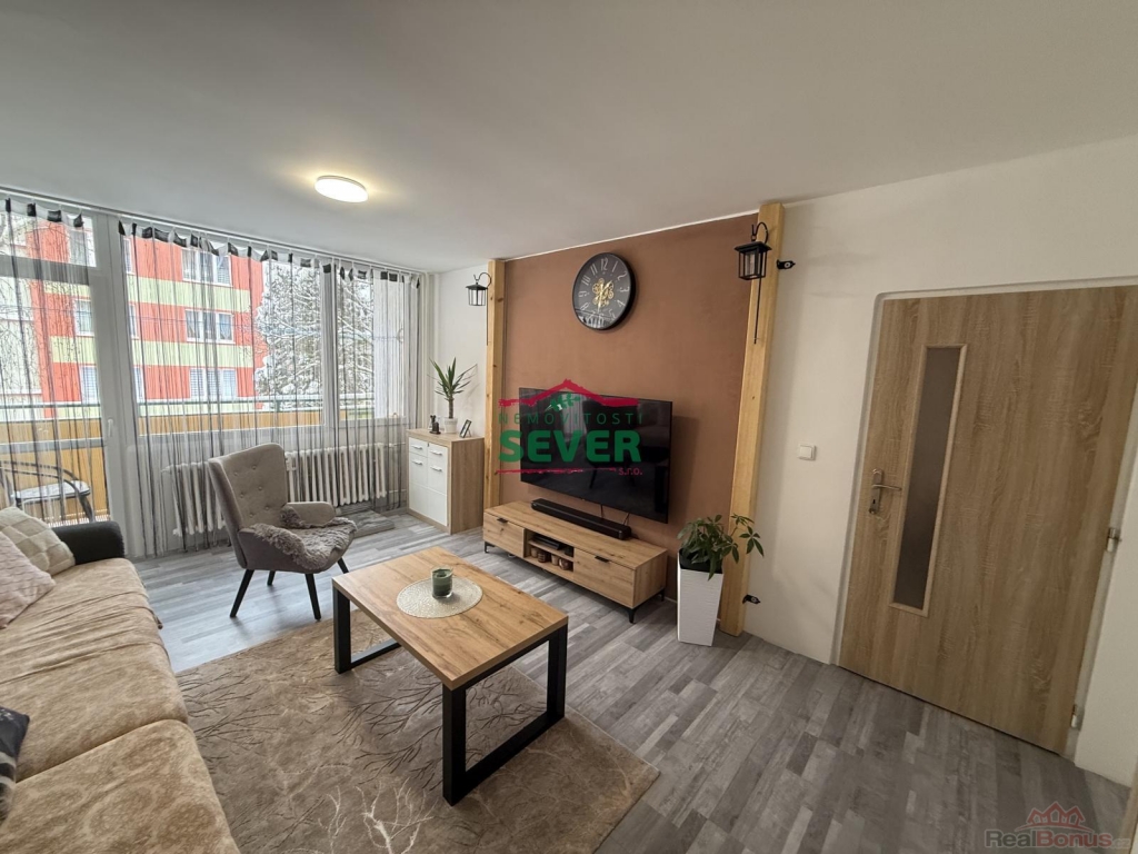 Nemovitosti SEVER vám zprostředkují prodej bytu 3+1, osobní vlastnictví, Postoloprty, okr. Louny, ul. Jiráskovo náměstí. Bytová jednotka po rekonstrukci z roku 2024, o výměře 82 m2, se nachází ve zvýšeném přízemí panelového domu a jeho součástí je lodžie, dvě komory na chodbě a jedna v bytě. V bytě jsou plastová okna, žaluzie den a noc, nové rozvody vody, elektřiny, interiérové dveře, vchodové dveře. V obývacím pokoji je plovoucí podlaha, v ložnici krytina PVC, v dětském pokoji koberec, v kuchyni a na chodbě keramická dlažba. Koupelna s WC jsou samostatné ve zděném jádru. Je zde sprchový kout, skříňka s umyvadlem, přípojka na pračku a sušičku, snížený strop, celé v keramickém obkladu. V kuchyni je rohová linka obložena dlaždičkami, elektrický sporák s indukční deskou, myčka na nádobí a jídelna. Dům po kompletní revitalizaci se nachází v klidné části města bez problémových nájemníků v blízkosti centra města. U domu je parkoviště a park. V případě zájmu zajistíme optimální financování našimi poradci.