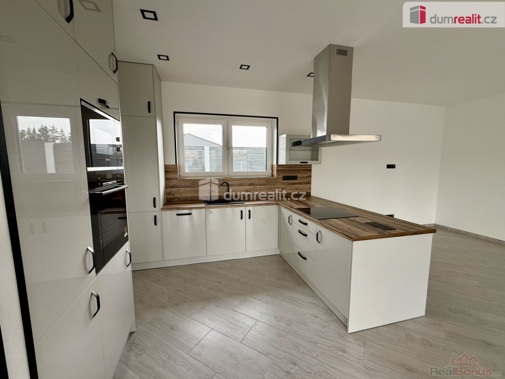 informace v realitní kanceláři, Dumrealit.cz Vám zprostředkuje prodej novostavby rodinného domu v obci Velká Hleďsebe u Mariánských Lázní. Dům byl vystavěn v roce 2025. Jedná se o jednopodlažní objekt (tzv. bulgalov). Dispozičně je dům řešen jako 4+kk. K dispozici je dále 2 x koupelna (vana+sprchový kout), 2 x WC a technická místnost. Podlahová plocha činí 177 m. Plocha pozemku činí 800 m.