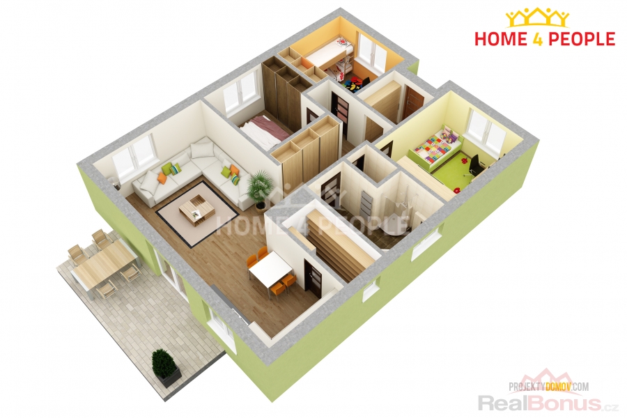 Cena včetně domu na klíč, sítí, přístupové komunikace, pozemku a DPH., Zprostředkujeme Vám výstavbu domu na klíč typ Eko104 4+kk, 125 m na pozemku (č. 21) o velikosti 1129m v Bořenovicích okr. Kroměříž. Bungalov Eko104 je typ rodinného domu vhodný do rovinatého, ale i mírně svažitého terénu. Součásti uvedené ceny, která již zahrnuje DPH je dům na klíč, inženýrské sítě mimo plynu, příjezdová i obslužná komunikace, veřejné osvětlení, chodník, centrální čistička odpadních vod, pozemek a veškeré projektové práce a stavební povolení. Přípojná místa jsou vyvedena na pozemku. Pozemek (číslo 21) je mírně svažitý na klidném místě obce. Šíře pozemku je 21 m. Dle územního plánu je pozemek veden a schválen pro rodinné bydlení a projekt byl schválen zastupitelstvem obce. Zastavěná plocha domu je 125 m s užitnou plochou 104 m. Jedná se o zděnou stavbu a nabízí se ve variantě na klíč. Topení je řešeno nízkonákladovým teplovodním podlahovým topením, tepelné čerpadlo se zásobníkem na teplou vodu 180l. Možnost změnit na jiný typ vytápění s doplatkem dle výběru. Uvedená cena domu obsahuje základovou desku, DPH a stavba bude provedena na klíč a předána po kolaudaci k okamžitému užívání. (Součástí ceny není kuchyňská linka a světla dokážeme za zvýhodněných podmínek zajistit přes naše dodavatele). Možnost změny stavebního materiálu na dřevostavbu s doplatkem nebo přistavit garáž přímo spojenou s domem. Délka výstavby od vydání stavebního povolení, 12 měsíců u dřevostavby a 13 měsíců u zděné varianty. Možnost výstavby pouze hrubé stavby za 2.875.000,-Kč. Obec Bořenovice se nachází v okrese Kroměříž ve Zlínském kraji, zhruba 3,5 km od Holešova, 28 km od Kroměříže a 10 km k dálnici D55. Žije zde cca 210 obyvatel. Základní školu děti navštěvují v sousedním městě Holešov. V obci plné pokrytí signálu LTE, dostupný internet i satelitní vysílání. V obci je obchod se smíšeným zbožím, zajištěna autobusová doprava do Holešova. Omezený počet pozemků pro prodej v tomto roce. Doporučuji prohlídku a to jak samotného pozemku, tak našich rozestavěných domů v okolí. ZTV Bořenovice: https://www.home4people.cz/developerske-projekty/vystavba-domu-na-klic-borenovice-okr-kromeriz_7 Ev. číslo: 29318. Energetický štítek: A (37 kWh/m2/rok).