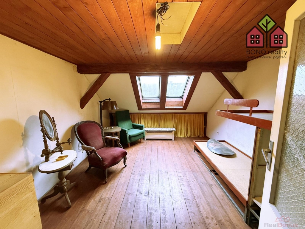 Dispozice domu jsou následující: v 1. PP jsou dvě místnosti původně užívané jako sklad zeleniny, dále dílna, koupelna (zde je umístěn kotel), technická místnost a garáž. V 1. NP (byt 2+1) je centrální chodba, pokoj, obývací pokoj a kuchyně, WC je na chodbě. V 2. NP (byt 2+1) je centrální chodba, obývací pokoj, kuchyně, jídelna, samostatné WC je opět na chodbě. V obou nadzemních patrech se dá rozšířením dispozice vybudovat i koupelny, které tu aktuálně nejsou. Nad tímto prostorem je z 1/2 půda a vedle půdy je menší obytný prostor užívaný jako pokoj, chodba a dvě komory pro uskladnění. V těchto prostorách je možnost vybudovat další byt o dispozici 1+1 nebo 2+kk. Součástí nahraných fotografií jsou vizualizace některých prostor domu a půdorysy jednotlivých podlaží včetně rozměrových kvót. Vezměte prosím na vědomí, že v daném měření může být mezní odchylka. Za domem (západní strana) je menší zahrada o výměře 80 m2, která je po celém obvodu ohraničena a roste tu krásný velký ořech. Parkování je dostupné na ulici nebo v menší garáži přímo v domě. Pro více informací či sjednání termínu prohlídky volejte realitnímu makléři. Těšíme se na vás.