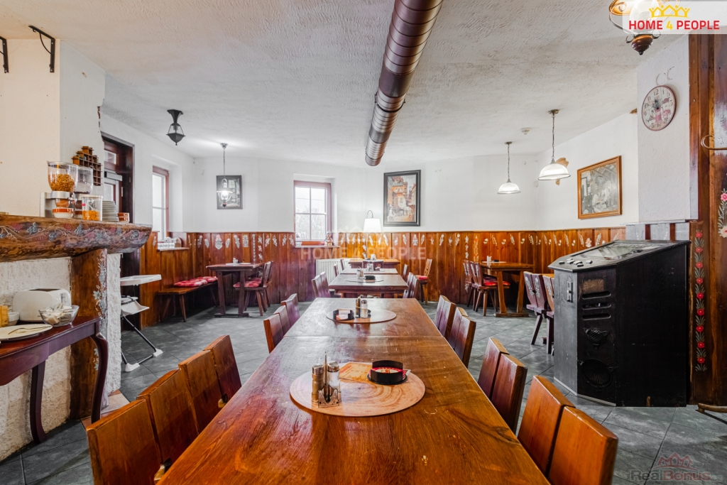 včetně vybavení, Zavedený pension s devíti pokoji, restaurací, plně vybavenou kuchyní, zahrádkou a parkováním v lokalitě Nové Hamry - Krušné hory.