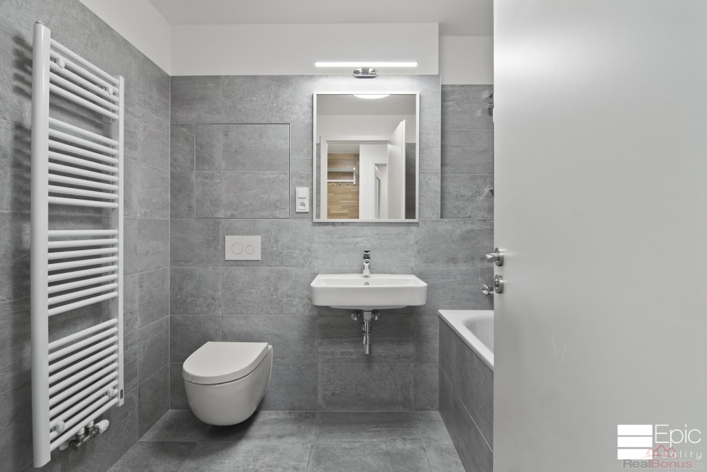 A když si budete chtít dopřát chvilku odpočinku, čeká na vás moderní koupelna (4,5 m) s vanou, která láká k horké koupeli po náročném dni. Každý detail v tomto bytě je promyšlený dřevěné podlahy, kvalitní okna a rekuperace vzduchu zajišťují příjemné klima v každém ročním období. Pro uložení Vašich cenností je dále k dispozici sklep o ploše skvělých 5m2.