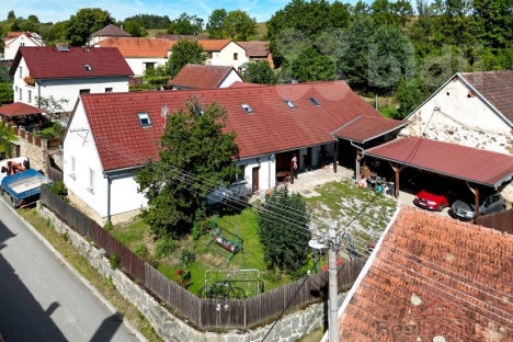 Dům stojí na pozemku o celkové výměře 888 m2 a nabízí dvě samostatné bytové jednotky: