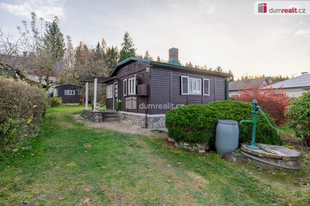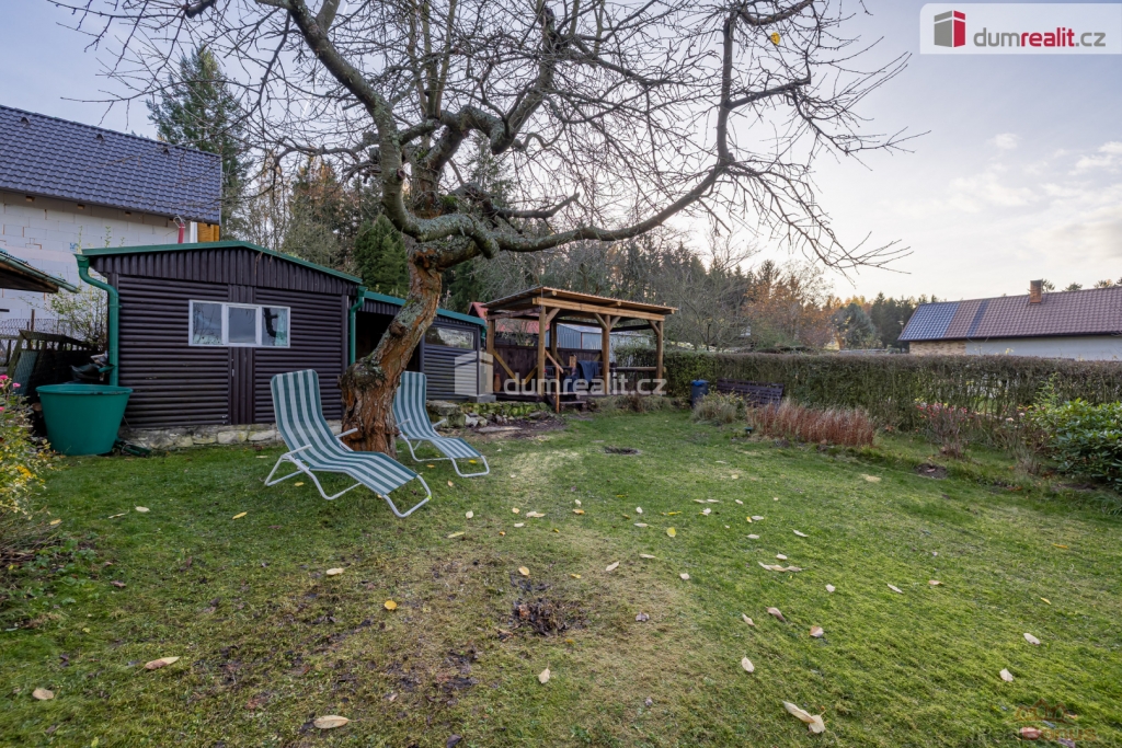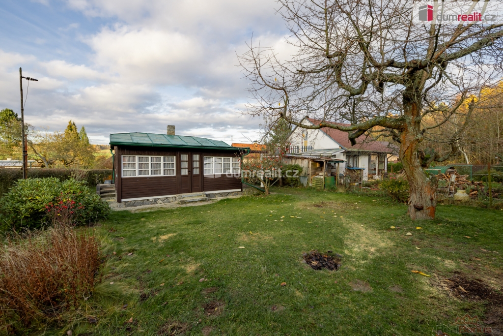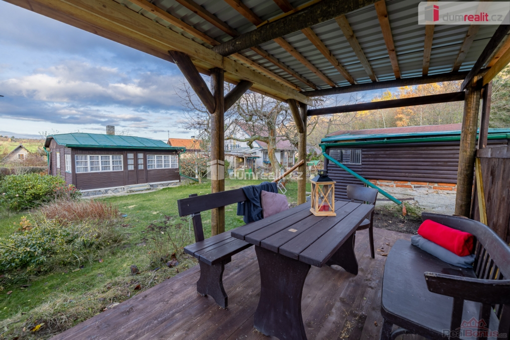 , prodej chaty o zastavěné ploše 47 m na Bucku, s pozemkem o celkové výměře 474 m. Na pozemku se nachází ještě zahradní domek na nářadí a pergola. Chata se skládá z prosklené verandy s jídelní částí, obývacího pokoje, jednoho neprůchozího pokoje, kuchyňky, koupelny se sprchovým koutem a wc, kde je i vstup do sklepa.