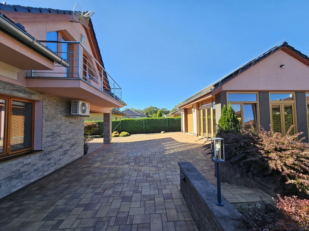 Vedle domu se nachází garáž s okouzlujícím vinným sklípkem s posezením a zasklená terasa pro relaxaci.