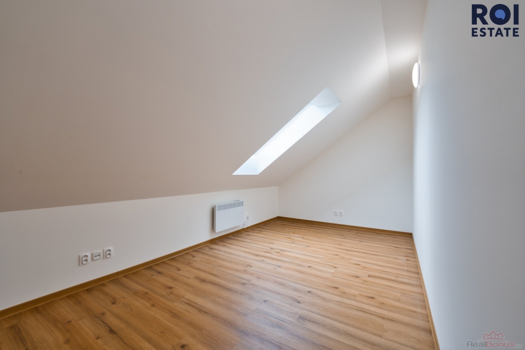 Po dřevěných schodech vystoupáte do horní části bytu, kde se nacházejí další dvě samostatné podkrovní ložnice.