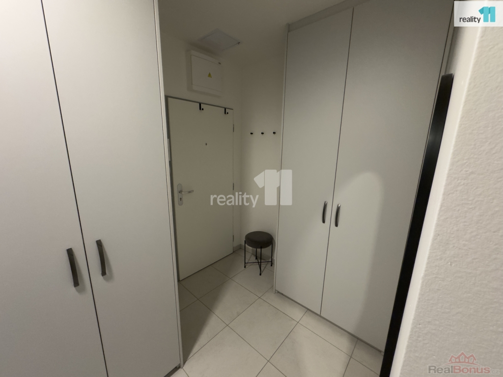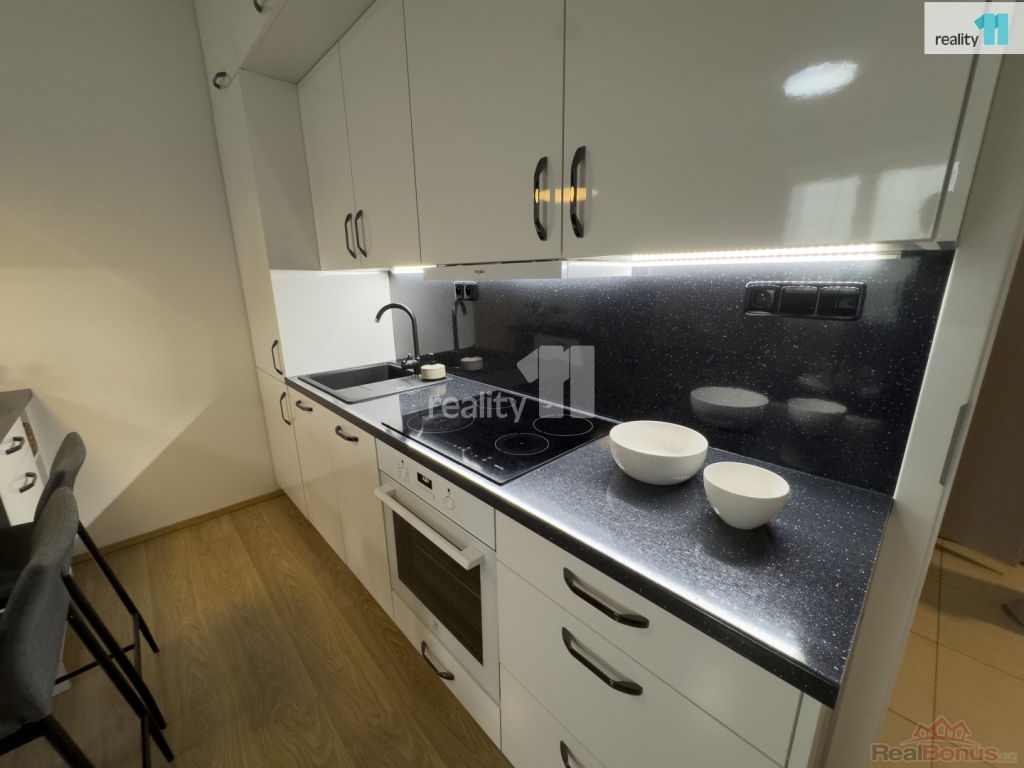 Minimalistický interiér bytu podtrhuje elegantní a nadčasový design kuchyňského koutu. Byt má plastová okna, vinylové podlahy a v chodbě velké množství úložných prostor na míru (vestavěné skříně jsou z roku 2022). Moderní kuchyňská linka je vybavena vestavěnými spotřebiči.