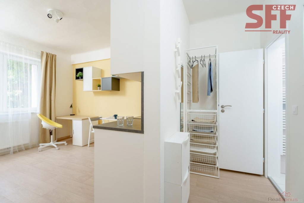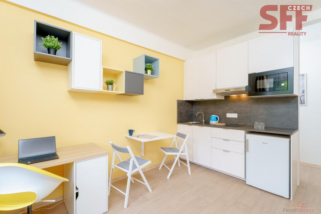 Bez provize! Od 1.12. 2025 ke střednědobému (minimum 3 měsíce) nebo dlouhodobému pronájmu nabízíme nové, moderní, plně zařízené studio (č. 43105) na adrese Čerčanská, Praha 4 jen 2 minuty pěšky od stanice metra Kačerov (červená linka C) s výbornou dostupností do centra Prahy.