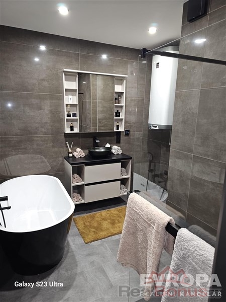 Byt vyniká nadstandardním provedením bezfalcové interiérové dveře, kvalitní vinylové podlahy, bezpečnostní vstupní dveře, trojskla, elektrické podlahové vytápění v celém bytě, bodové osvětlení v SDK podhledech a značková sanita v koupelně i na WC.