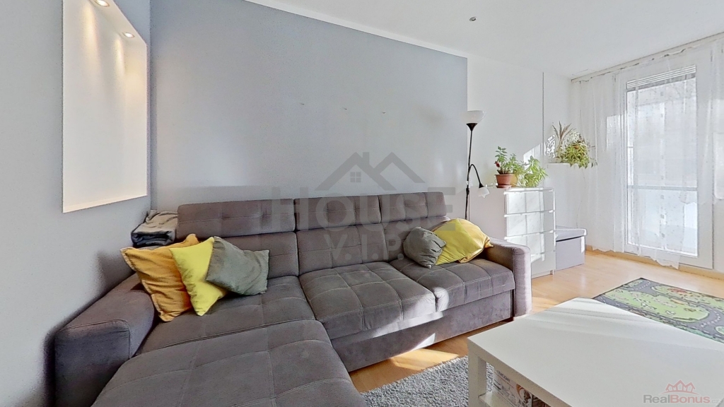 Dominantou bytu, umístěného ve druhém podlaží, je světlý obývací pokoj se vstupem na jižně orientovanou lodžii (6 m2), která poskytuje příjemné posezení s výhledem do klidného okolí se zelení a dětskými hřišti. Z obývacího pokoje je vstup do kuchyně s plně vybavenou kuchyňskou linkou do ?U? a s jídelním koutem. Dále je z obýváku vstup do prostorné chodby, ze které se vchází do dvou neprůchozích pokojů, do koupelny s vanou, do praktické komory a na samostatné WC.