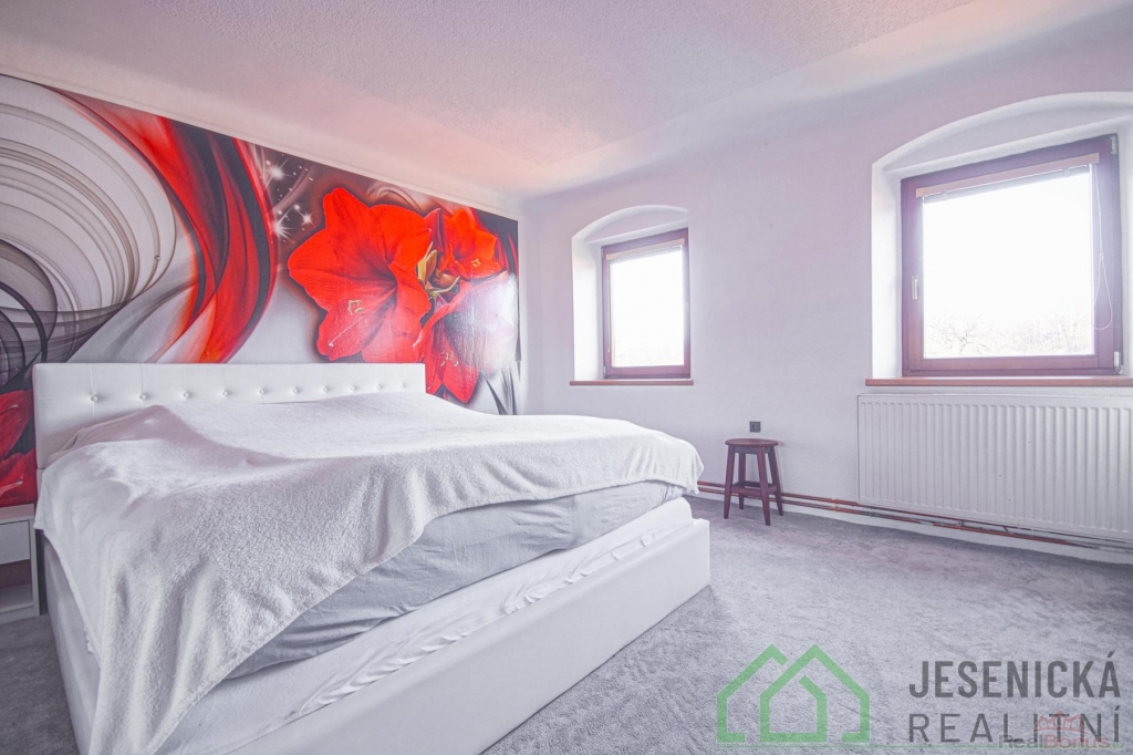 Nachází se přímo v centru města Žulová. Nemovitost nabízí dvě bytové jednotky s krásným výhledem na město. V prvním podlaží je bytová jednotka s dispozicí 5+1 v druhém podlaží nalezneme byt s dispozicí 3+1.