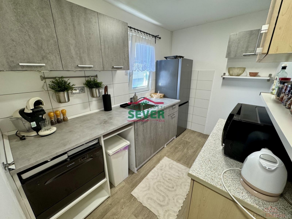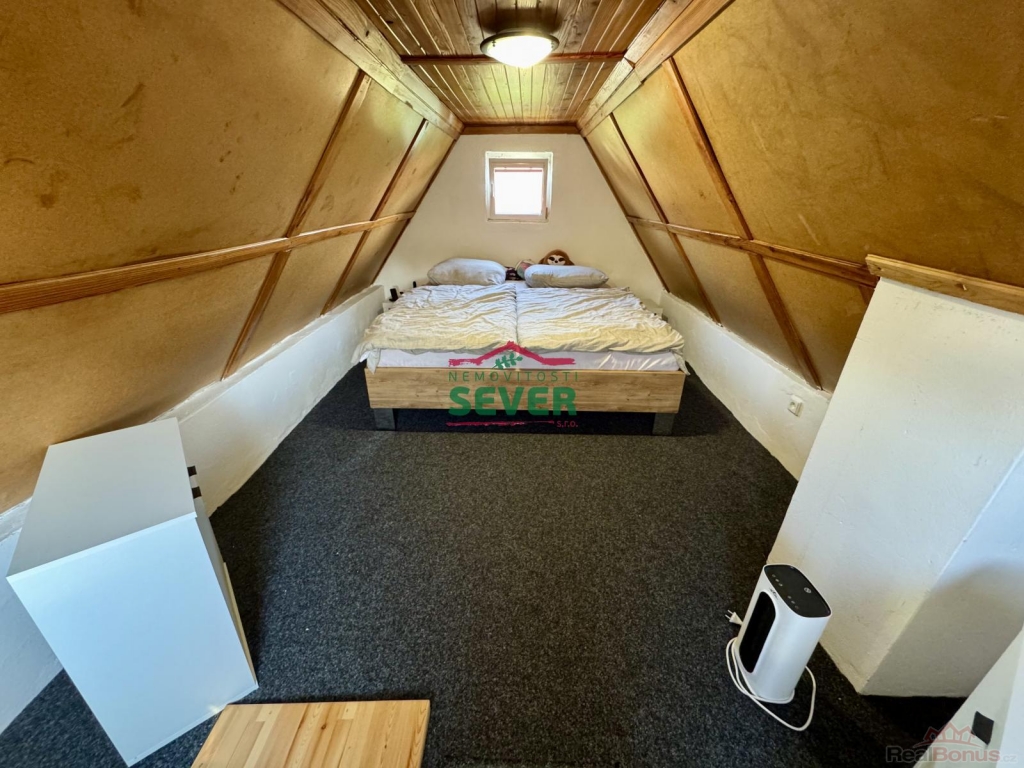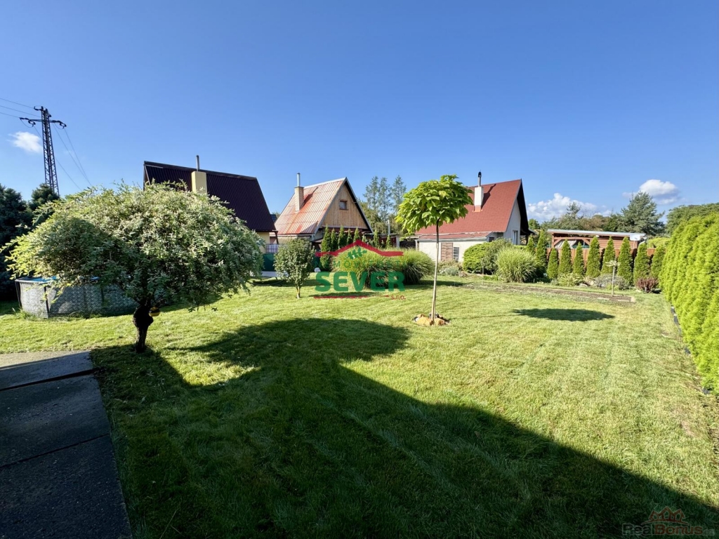 Nemovitosti SEVER vám zprostředkují koupi chaty se zahradou v osobním vlastnictví v obci Havraň v okr. Most. Podsklepená chata se zastavěnou plochou 37 metrů čtverečních se nachází v zahrádkářské kolonii v okrajové části obce. Chata prošla kompletní rekonstrukcí a skládá se z předsíně se vstupem do podkroví a sklepa, toalety, obývacího pokoje, kuchyně, koupelny a ložnice v podkroví. Chata má novou střechu se svody a plastová okna. Do chaty je přivedena elektřina 230V a sezónní pitná voda, odpad je svedený do jímky. Vytápění chaty zajišťují krbová kamna, ohřev vody je přes bojler. K chatě náleží terasa s posezením a rovinatá zahrada s výměrou 361 metrů čtverečních. Na zahradě je díky vysázeným tújím dostatek soukromí. Na zahradě je dále k dispozici domek na nářadí, bazén a dvoulůžkové lehátko se stíněním. Za chatou jsou posazené nádrže na dešťovou vodu, ze kterých je čerpána voda k závlaze zahrady. Možnost parkování je přímo před zahrádkářskou kolonií. Část občanské vybavenosti jako obchod, lékaře a poštu nalezneme přímo v obci. Veškerou vybavenost poté v 6 kilometrů vzdáleném Mostě. V případě zájmu zajistíme optimální variantu financování na tuto nemovitost za zvýhodněných podmínek pro naše klienty.