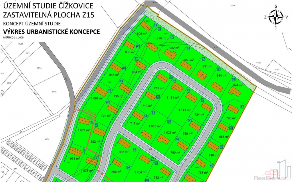 Nabízíme k prodeji pozemek k výstavbě rodinného domu v obci Čížkovice. Pozemek o rozloze 2480 m2 je dle přiložené urbanistické studie připraven k výstavbě domu. Nachází se dle územního plánu v zastavitelném území - zóna Z15. Na kraji pozemku vede vysoké napětí, které bude časem přeloženo nebo uloženo do země. Do té doby je potřeba počítat s ochranným pásmem.