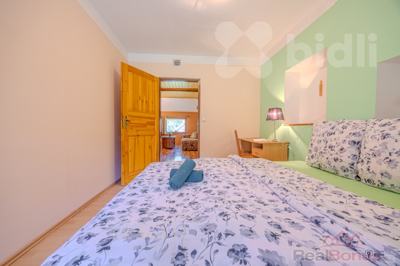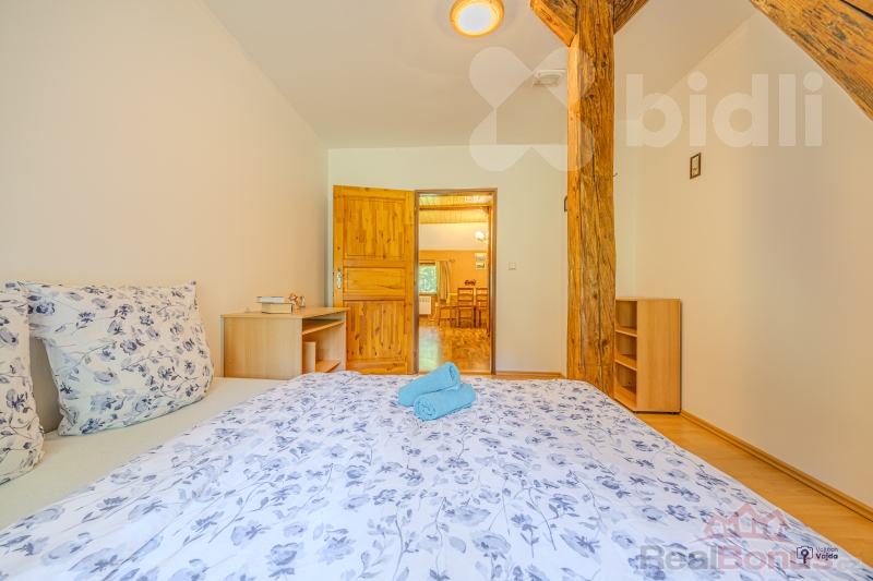 Celková užitná plocha pensionu činí 513 m2 s pozemkem 1681m2. V současnosti jsou k dispozici tři plně vybavené apartmány o dispozici 4+kk s kapacitou 18 lůžek, což novému majiteli umožňuje okamžitě apartmány nabízet ke krátkodobým pronájmům. Další dva apartmány lze vybudovat v podkroví a jeden v přízemí, což by novému majiteli značně rozšířilo investiční možnosti. Každý apartmán má vlastní kachlová kamna, další jsou ve společenské místnosti a chodbě. Alternativou pro vytápění je elektrický kotel, ohřev vody zajišťuje bojler, pitná voda je ze studny. Součástí vybavení je potom wellnes zóna obsahující saunu a ochlazovací bazének.
