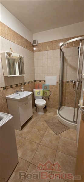 Prostorný byt je situován v přízemí dvoupodlažního domu a nabízí dostatek soukromí a komfortu. K dispozici je obývací pokoj spojený s kuchyňským koutem, který je vybaven kuchyňskou linkou, spotřebiči včetně samostatného elektrického sporáku, mikrovlnné trouby a lednice s mrazákem. Součástí bytu je také pračka, což ocení každý, kdo hledá komfort bez kompromisů.