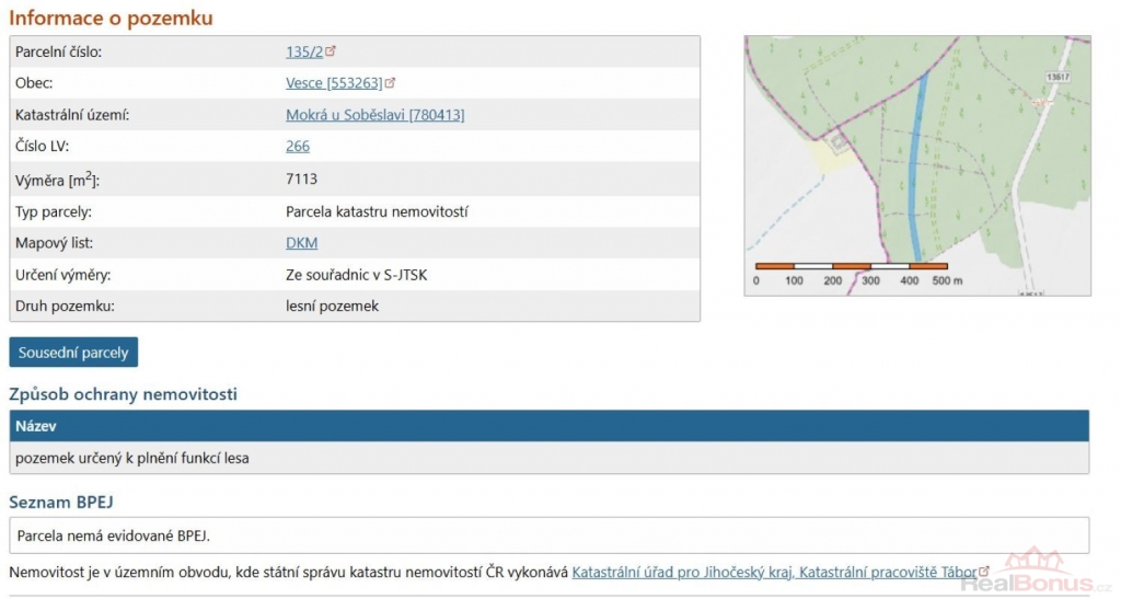 | Druh pozemku | les |