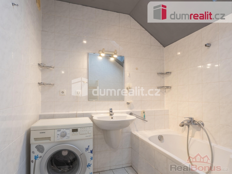 Byt disponuje užitnou plochou 62 m v nejvyšším 6. nadzemním podlaží. Do vašeho budoucího bytu se dostanete pohodlně bezbariérově velkým výtahem a to jak z ulice, tak rovnou z garážového stání, které je součástí prodeje. Před bytem na stropu chodby je umístěna poloprůhledná střešní kopule, která nejen osvětluje celý prostor a je i skvělým a neobvyklým doplňkem interiéru domu. Vedle bytu na patře je umístěna velká sušárna prádla. Po vstupu do bytu Vás čeká větší chodba s vestavěnou skříní. Z chodby jsou samostatné vstupy do velkého obývacího pokoje s kuchyní a do ložnice. Oba prostory mají střešní okna a tedy poskytují větší soukromí a samozřejmě více přirozeného světla. Z chodby se dále vstupuje dvěma vchody do samostatného WC a do koupelny, ve které je nejen větší vana, ale která je zejména osvětlená střešním oknem, které slouží i k rychlému větrání. Kuchyň je nejen velká a vkusná, ale zejména je ve výborném stavu. Její hlavní dominantou je americká lednice. Podlahy v bytě jsou plovoucí, jen WC a koupelna jsou provedeny v kombinaci dlažby a obkladů. Velkou výhodou pro budoucího majitele bytu je možnost instalace venkovní klimatizační jednotky. Další výhodou je možnost zanechat kompletní vybavení bytu budoucímu majiteli