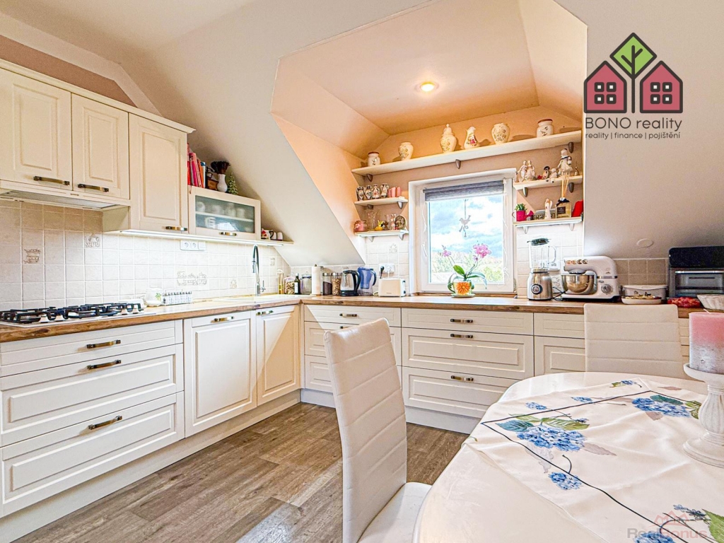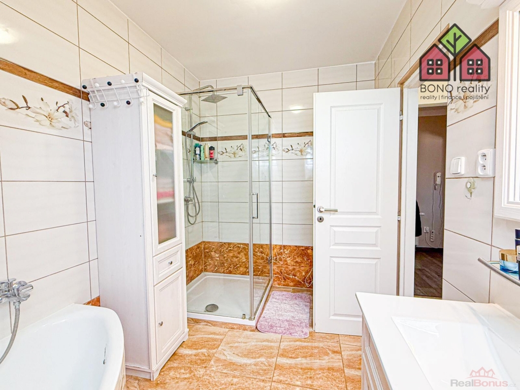 Samotná bytová jednotka je umístěná v 1. patře revitalizovaného cihlového domu, který svou rekonstrukcí prošel v průběhu posledních let -> zánovní střecha, fasáda, plastová okna či venkovní rolety. Byt rovněž prošel rozsáhlou rekonstrukcí. Během ní došlo zejména k interiérovým úpravám -> vybudování koupelny a umístění nové kuchyňské linky. Jeho současný stav je tak velice dobrý. Pěkně prosvětlený byt o podlahové ploše 90 m2 se sestává z obývacího pokoje s kuchyňským koutem, ložnice, dětského pokoje, koupelny, společné toalety a vstupní chodby s přístupy do všech místností bytu. Díky velmi dobré a praktické dispozici je byt prostorný a jeho neprůchozí pokoje vytvářejí příjemný pocit soukromí.