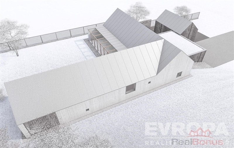 Při plánování Vašeho nového domova je třeba respektovat podmínku stavebního úřadu sedlovou střechu. Tato podmínka zajistí, že Váš dům harmonicky zapadne do okolní zástavby a krajiny. V naší fotodokumentaci najdete inspirativní návrh domu, který lze na tomto pozemku vybudovat.