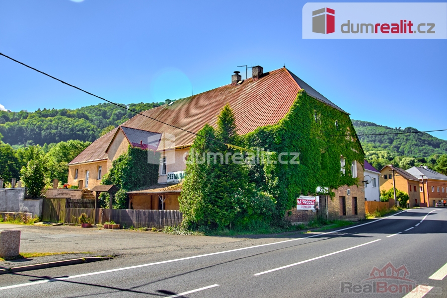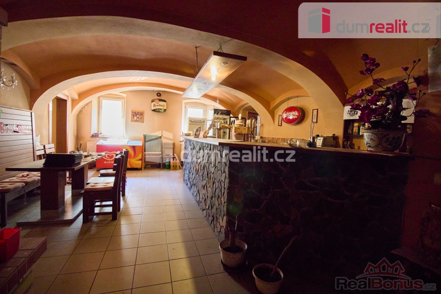 Cena vč. právních služeb a provize RK, Dumrealit.cz Vám zprostředkuje prodej rodinného domu ve Stráži nad Ohří nedaleko Ostrova u Karlových Varů s možností využití jako komerční objekt. Jedná se o rodinný dům s restaurací, kavárnou, barem, prodejnou potravin a s vlastní zahradou a parkovištěm. Objekt má rozsáhlý pozemek o celkové rozloze 1.361 m. Budova je dvoupodlažní, kdy v přízemí se nachází: restaurace s krbem (60 míst), venkovní terasa (40 míst), bar, kavárna, WC, kuchyně s veškerým gastro vybavením, sklad a prodejna potravin. V 1. patře se nachází: koupelna vč. sprchového koutu, koupelna vč. vany, WC, 7 pokojů, velký sál (dříve kulturní akce, plesy atd.) a vstup na půdu. Půdní prostor je velice prostorný s možností vybudování bytových jednotek. Místy je půdní prostor dvoupodlažní. Dům má plastová okna, rozvody elektřiny, rozvody topení vč. radiátorů, omítky vč. štuků, dlažby (chodby, schodiště, komerční prostory), plovoucí podlahy (místnosti) a interiérové dveře. Dům je z 1/2 podsklepený. Vytápění domu je zajištěno plynovým kotlem a ohřev vody je zajištěn elektrickým bojlerem. U domu je garáž a celý objekt vč. zahrady je oplocen. Součástí je vyasfaltované parkoviště 558 m. V nedávné době objekt sloužil jako zavedená restaurace vč. stálé klienteli, prodejna potravin, v letních měsících kemp pro vodáky a zázemí pro cyklisty. Objekt je vhodný k provozování restaurace, kavárny, baru, prodejny potravin nebo k vybudování penzionu nebo k přestavbě na bytové jednotky. Tuto nemovitost lze hradit hypotečním úvěrem, který Vám rádi pomůžeme vyřídit v našem hypotečním centru. Vzhledem k tomu, že před zadáním do inzerce nebyl vyhotoven PENB, je tento objekt v souladu s platným zákonem zařazen do energetické třídy G. Ev. číslo: 638941. Energetický štítek: G