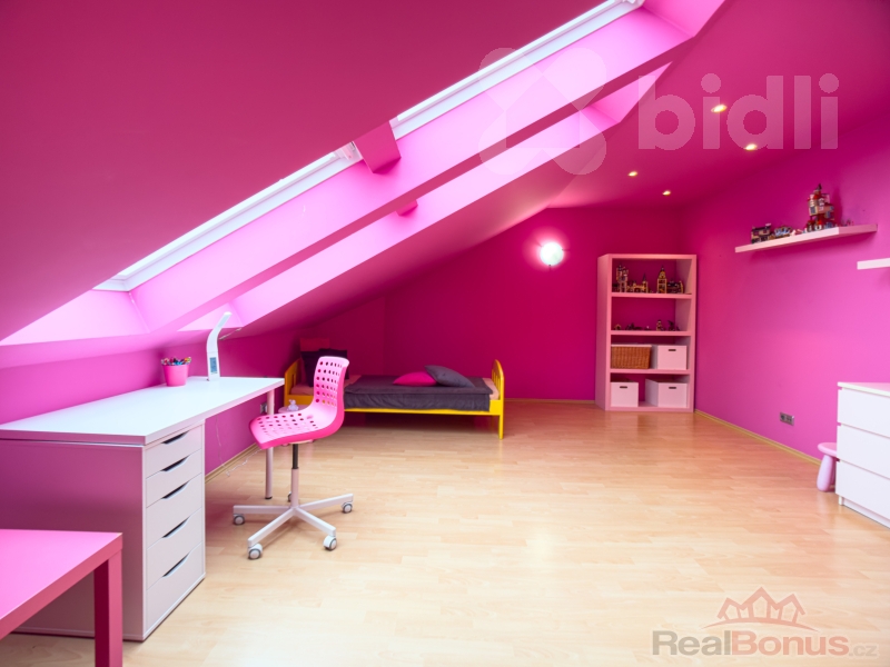 V patře se nachází další ložnice, dva samostatné pokoje, šatna a stylová koupelna s rohovou vanou, která nabízí opravdový relax po dlouhém dni.