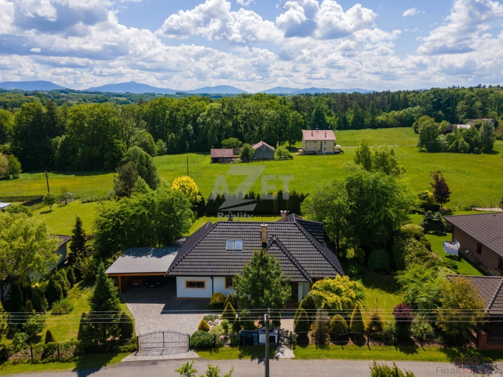 Dvoupodlažní, nepodsklepený a velmi dobře izolovaný dům o dispozici 7+kk nabízí velkorysou podlahovou plochu 246 m a je umístěn na pozemku o výměře 1 794 m. Zastavěná plocha činí 270 m2. Dům se nachází ve slepé ulici, obklopený ze tří stran lesy, což zajišťuje výjimečný klid a soukromí.