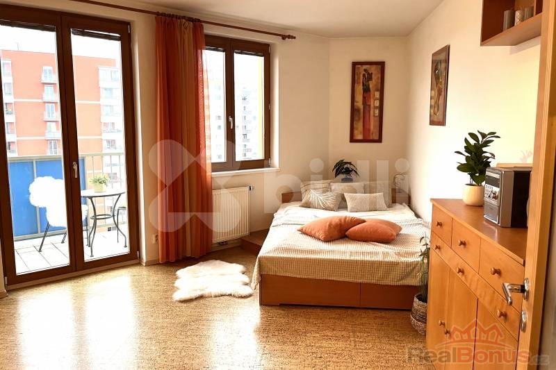 Ve výhradním zastoupení majitele nabízíme k pronájmu prakticky zařízený byt 1+kk, o velikosti 31 m2, s balkónem 4,5 m2, v 9. NP novostavby z r. 2006 s výtahem, nacházející se v ulici U Kamýku, na okraji menšího panelového sídliště, v oblíbené lokalitě Prahy 4 - Kamýku, s velmi dobrou dostupností do centra Prahy.