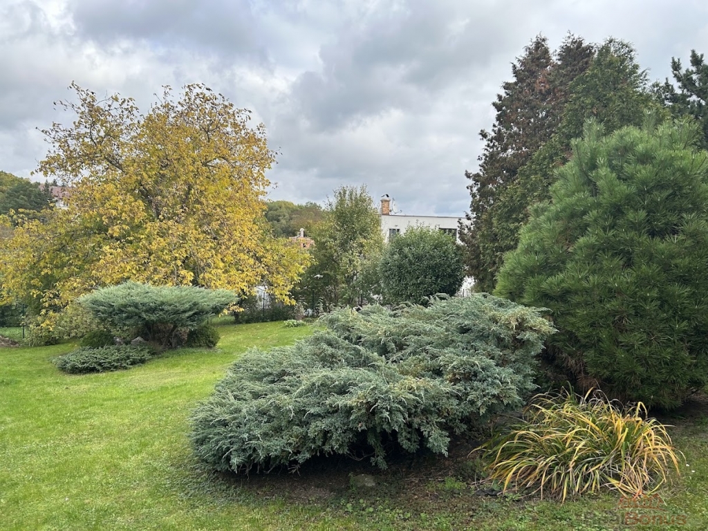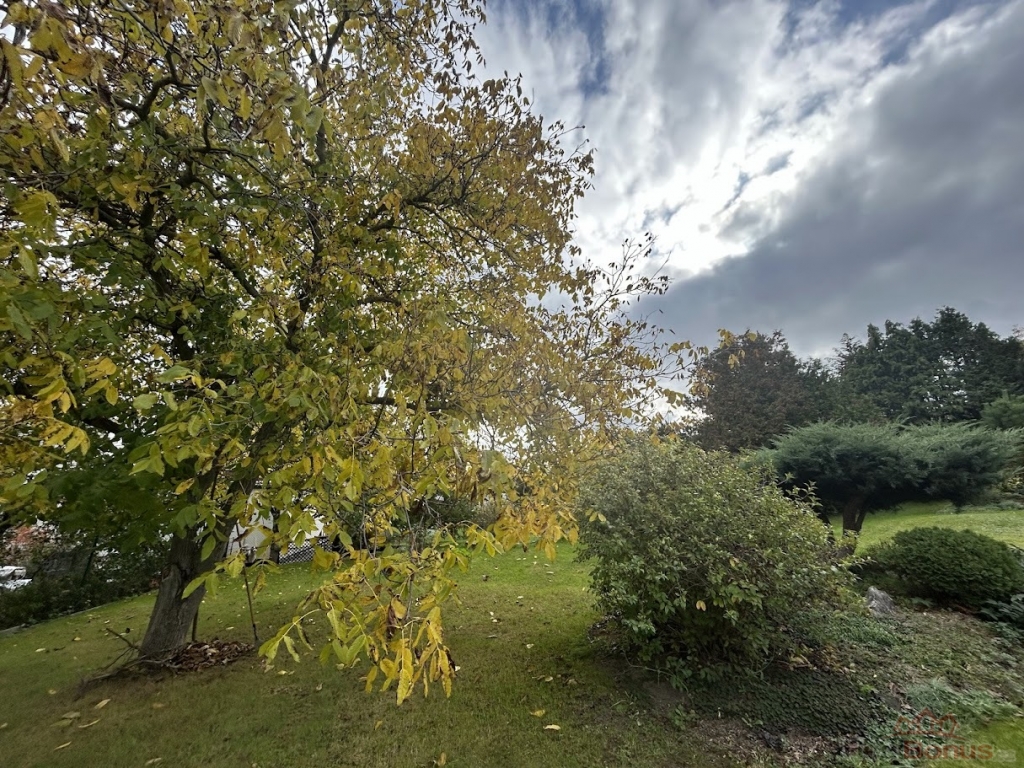 K domu náleží velmi prostorný pozemek o výměře 1.494 m, který je možný rozdělit na dvě samostatné stavební parcely, což mu přidává na hodnotě, pokud by budoucí majitelé uvažovali o další výstavbě event. prodeji části pozemku. Zahrada je majiteli s láskou opečovávaná a připomíná park. Součástí domu je samostatná dvoupodlažní zděná stavba, která slouží v horní části jako prostorná garáž o rozměru 44 m a ve spodní části této stavby je dílna s rozlohou cca 25 m.