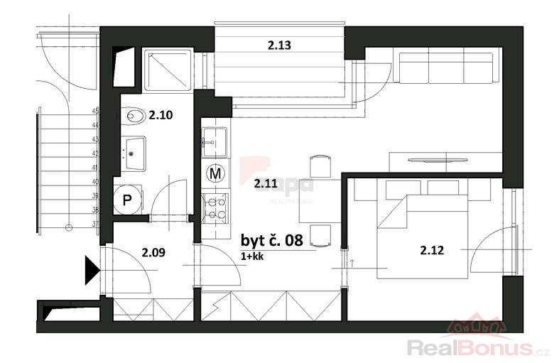 | Dispozice bytu | 2+kk |