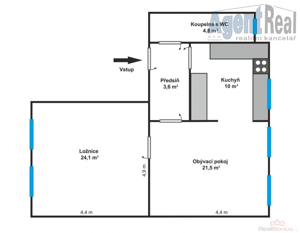 | Dispozice bytu | 2+kk |