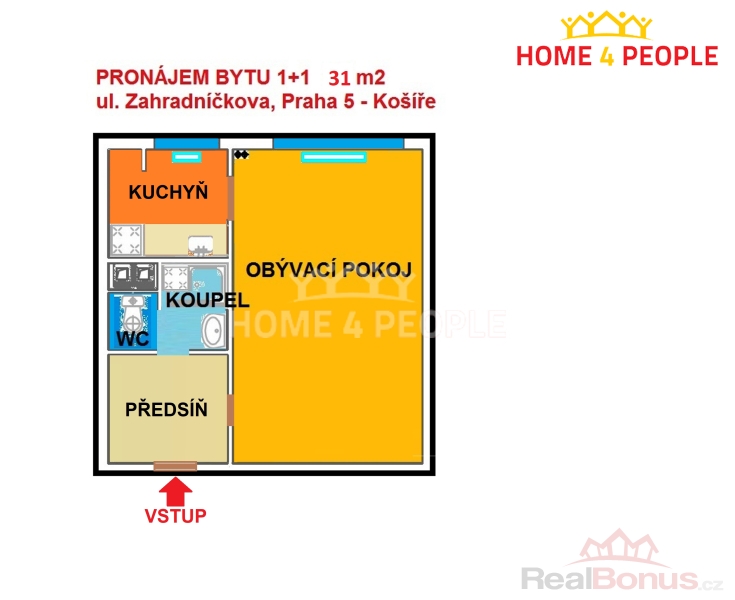 +popl. 4000, Cena za všechny služby a energie, Zprostředkujeme Vám výhradní pronájem velmi pěkného bytu o dispozici 1+1 a obytné ploše 31 m. Byt se nachází ve třetím nadzemním podlaží (2.patro) čtyřpodlažního zatepleného cihlového domu bez výtahu v pražských Košířích, v ulici Zahradníčkova. Byt je v osobním vlastnictví a má následující dispozice: kuchyň s oknem, předsíň, koupelna s kvalitním sprchovým koutem a pračkou, samostatné WC, pokoj V bytě je následující vybavení: kuchyňská linka se spotřebiči - lednice, digestoř, el. sporák, pračka, televize, v pokoji masivní dvoulůžko s kvalitní matrací, psací stůl se židlemi, skříně, nové radiátory atd. Na podlaze je položeno PVC, koberce a dlažba. Ohřev vody a topení je řešen ústředním rozvodem z vlastní kotelny v domě (lepší cena než z teplárny). Nová plastová okna se žaluziemi směřují k západu do zeleně za domem. Cihlový dům byl v roce 2016 zateplen a celkově revitalizován - průkaz energetické náročnosti budovy - třída C, byla provedena celková rekonstrukce fasády, střechy, všech rozvodů a chodeb, společenství vlastníků velmi dobře funguje. Je možno užívat společnou kolárnu. Internet je zaveden - O, VODAFONE, T-MOBILE, PE3NYNET. Parkování je bezproblémové před domem - možnost vyřízení modré zóny pro celou Prahu 5. V lokalitě pražských Košíř je veškerá občanská vybavenost: škola, školka, kostel, kino, restaurace, lékař, lékárna, pošta, nákupní středisko. Dále se zde nachází park Homolka, park Cibulka, golfové hřiště Motol, motolské rybníky a koupaliště, tenisové centrum, minigolf atd. MHD - tram č. - 1 min. pěšky; BUS - 5 min.; Metro B - Anděl 10 min, Metro A Motol 5 min. Je zde krásné a klidné bydlení blízko centra města. Rezervace možná ihned, byt je přípraven k nastěhování od 3/2026!!! Velmi doporučujeme osobní prohlídku. Ev. číslo: 30997. Energetický štítek: C (82 kWh/m2/rok).