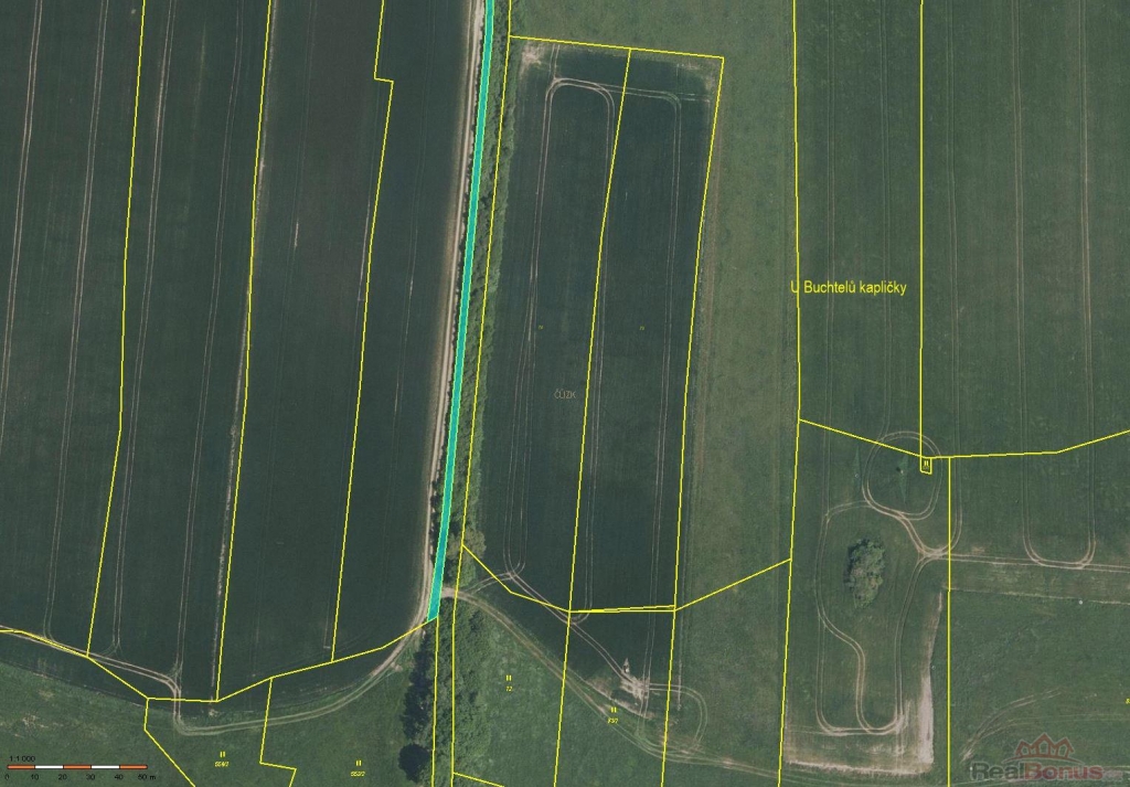 Pozemky jsou v katastru vedeny jako orná půda o výměře 1403 m2 a trvalý travní porost o výměře 90 m2. Po dohodě s vlastníkem je možné zakoupit i samostatné parcely.