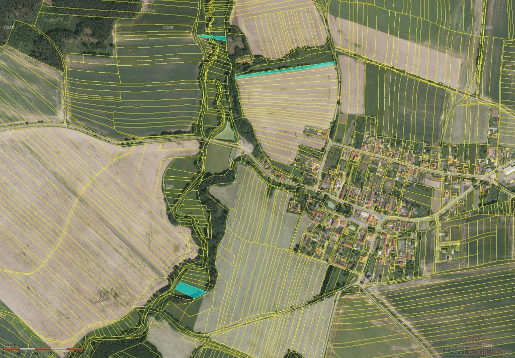 Pozemky jsou rozděleny na ornou půdu o výměře 2484 m2, trvalý travní porost o výměře 2913 m2 a vodní plochu o výměře 83 m2. Jedna z parcel je aktuálně obhospodařována na základě pachtovní smlouvy s roční výpovědní lhůtou, což umožňuje budoucímu majiteli čerpání dotací. Po dohodě s vlastníkem je možný samostatný prodej jednotlivých parcel.