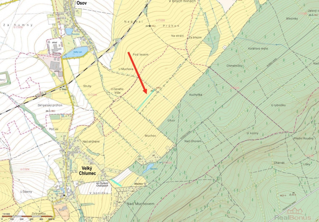 Nabízíme k prodeji soubor dvou sousedících parcel o celkové výměře 1960 m2 v katastrálním území Velký Chlumec (okres Beroun, Středočeský kraj).